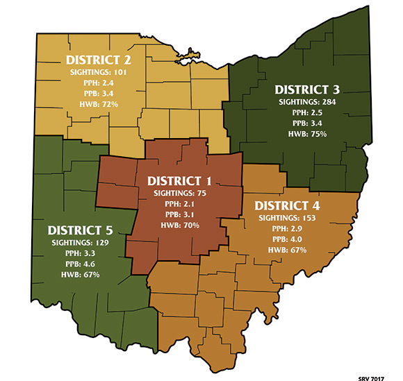 The Ohio Department of Natural Resources (ODNR) relies on public reports of wild turkeys and their young in July and August of each year to estimate nest success and poult survival. The annual poult index can serve as an indicator of wild turkey population trends and inform harvest regulations in future years. For 2025, the wild turkey poult index was 2.7 poults per hen. The 10-year average for poults per hen is 2.8. The slightly below average brood results follow four consecutive years of above average results. Wild turkey brood surveys in 2021 (3.1 poults per hen), 2022 (3.0), 2023 (2.8), and 2024 (2.9) showed strong nest productivity. The long-term average increased in 2024 because of recent turkey nest success. Regionally, ODNR notes, different regions reported differing numbers: southwest Ohio saw 3.3 poults per hen; southeast, 2.9; northeast, 2.5; northwest, 2.4; central, 2.